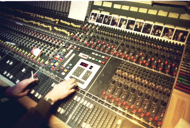 The board at Rockfield Studios in Monmouth, Wales. Who has those Polaroids?
